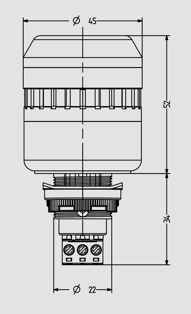 - cota de montaje Ø 22,5 mm/M22